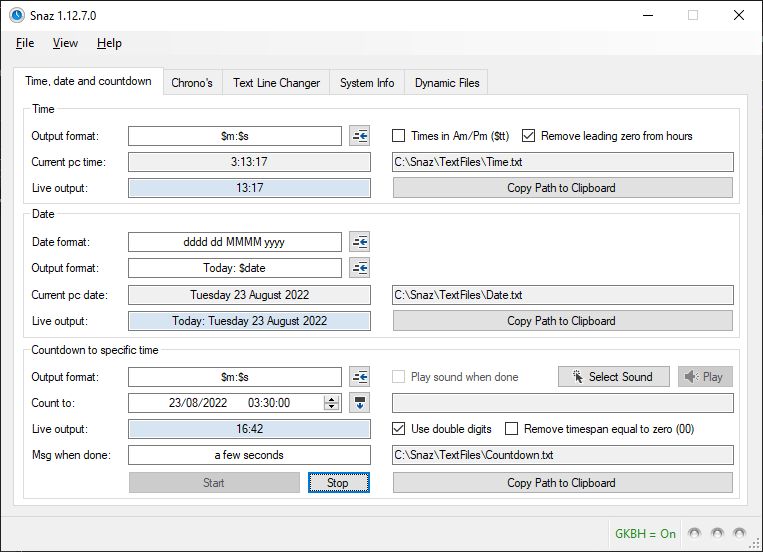 В главном окне проги обращаем внимание на нижнюю область (Countdown to specific time). Выставляем все так, как стоит на скрине (кроме времени, естественно. Там вы просто будете подбивать время начала матча и вести отсчет до него)