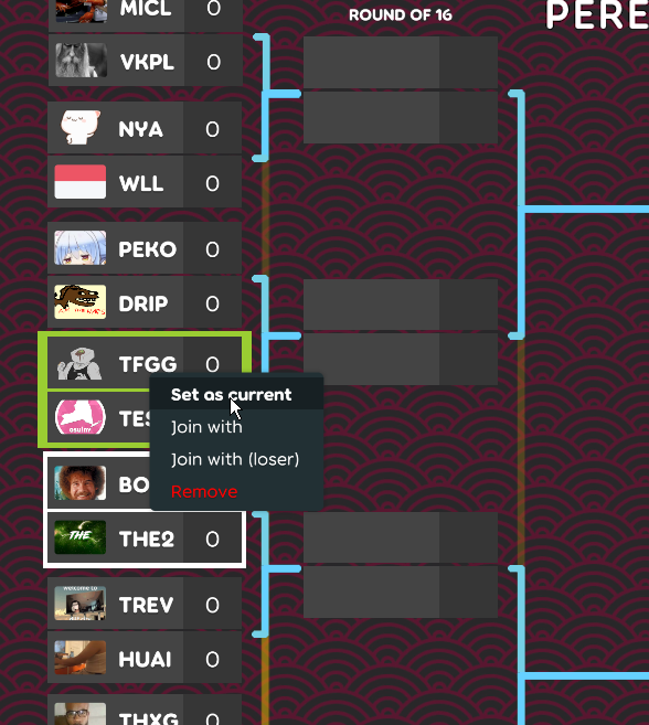 Перед матчем во вкладке Bracket Editor помечаем нужный нам матч текущим. Ищем матч в сетке, жмём ПКМ и тыкаем "Set as current"
